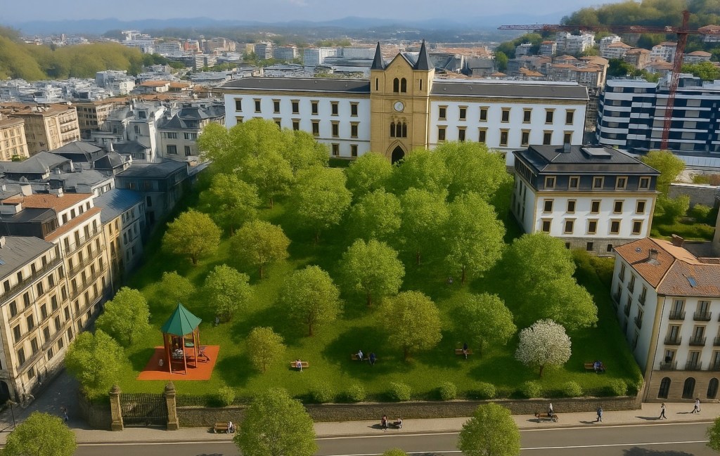 - Garantizar la accesibilidad a las dos zonas de paseo, estancia y juegos infantiles. Un acceso desde el actual portón en la esquina de Easo, otro en el final del murete en la Cuesta de Aldapeta, así como las vías peatonales y los dos ascensores ya existentes para acceder a la plataforma del hotel y cota superior de la ladera.