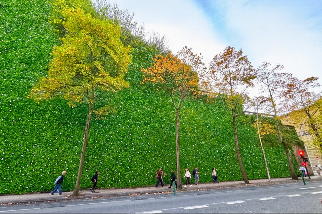 La actuación pretendida en la nueva fachada del Museo San Telmo nada tiene que ver con la propuesta de un jardín vertical NATURAL en el Muro. En este caso se trata de favorecer el crecimiento de una planta trepadora, bien seleccionada, que se pega con sus “ventosas” al Muro y va creciendo junto a una flor que conviva y funcione bien en ese hábitat. No hay artilugios en esa fachada de piedra que se levantó en 1914. Lo explicamos en el documento que tienes en esta web y lo hablamos en la pasada reunión abierta.