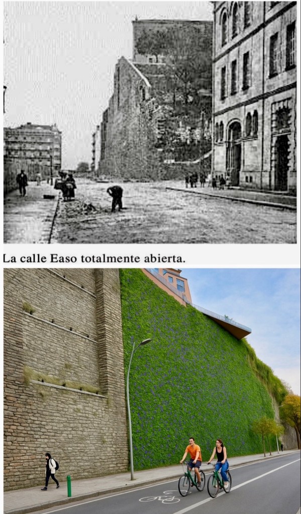 Una vez que el gobierno municipal, debido a la presión ciudadana, expresó el pasado 11 de abril de 2025 su intención de renunciar a construir en San Bartolomé un centro comercial con un parking subterráneo, debería acordar ahora la conversión del Muro de la calle Easo en un jardín vertical o muro verde. Como su materialización y consolidación llevará su tiempo, debería iniciarse en la primavera de 2026 la oportuna intervención.